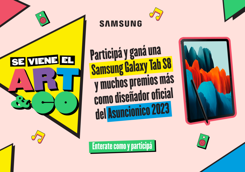 El ganador, además de ser el diseñador oficial del Artsuncionico 2023, recibirá entre otros premios, una Samsung Galaxy Tab S8. Los afiches de los 8 finalistas del concurso “Artsuncionico”, serán exhibidos durante el festival el próximo 22 y 23 de marzo.